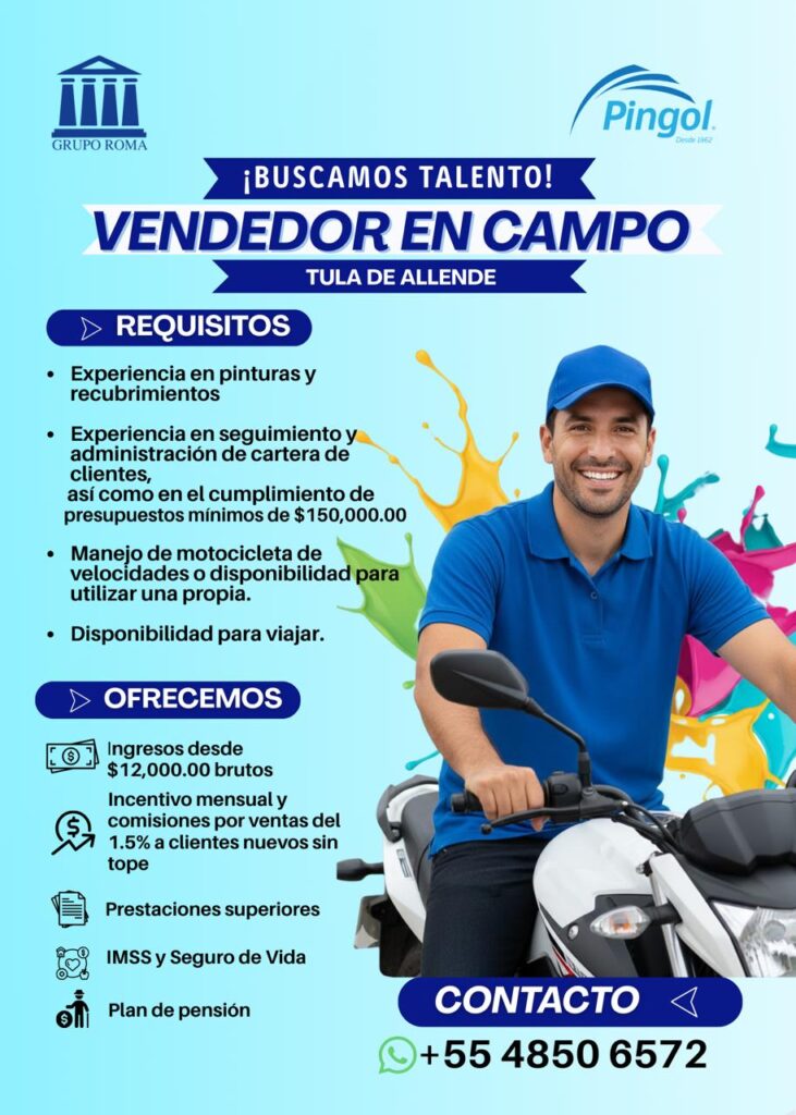 Experiencia en ventas de campo · Alta orientación a resultados · Autonomía operativa · Capacidad de negociación y cierre · Disponibilidad total para trabajo en campo.